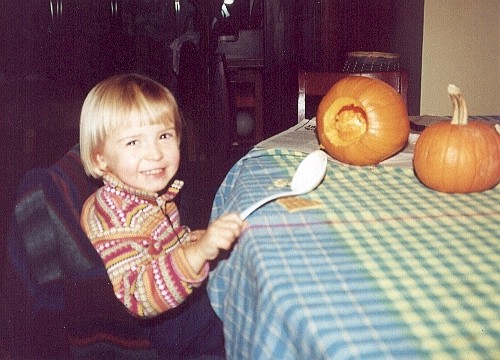 | Carving pumpkins with Tommy. October 2000 |