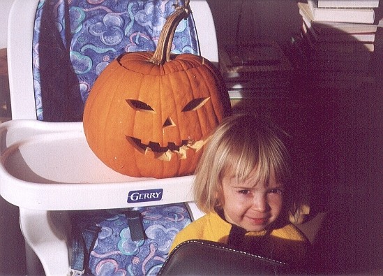 | Madeline's first jack-o-lantern, from the